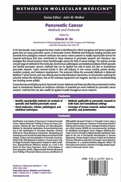 This ambitious collection of essential yet novel methods for pancreatic cancer research or cancer research in general features an outstanding cast of authors who are esteemed leaders in the field. The authors provide a broad range of methods for molecular, biochemical, pathological, and statistical analysis of sporadic and familial pancreatic cancer, methods that can be applied not only to basic, but also to translational pancreatic research. Topics covered include in vitro cell cultures, in vivo mouse models, protein studies, mutation analysis, and treatment development.