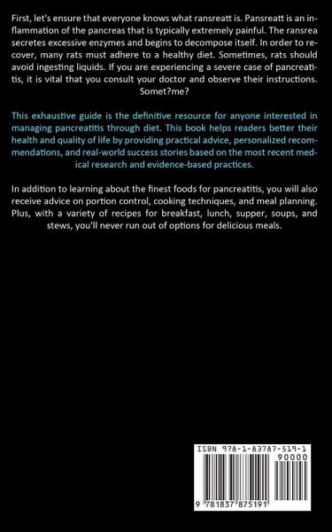 First, let's ensure that everyone knows what ransreatt is. Panzerotti is an inflammation of the pancreas that is typically extremely painful. The ransrea secretes excessive enzymes and begins to decompose itself. In order to recover, many rats must adhere to a healthy diet. Sometimes, rats should avoid ingesting liquids. If you are experiencing a severe case of pancreatitis, it is vital that you consult your doctor and observe their instructions. This exhaustive guide is the definitive resource for anyone interested in managing pancreatitis through diet. This book helps readers better their health and quality of life by providing practical advice, personalized recommendations, and real-world success stories based on the most recent medical research and evidence-based practices. In addition to learning about the finest foods for pancreatitis, you will also receive advice on portion control, cooking techniques, and meal planning. Plus, with a variety of recipes for breakfast, lunch, supper, soups, and stews, you'll never run out of options for delicious meals.