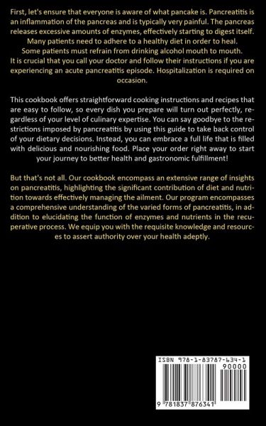 First, let's ensure that everyone is aware of what pancake is. Pancreatitis is an inflammation of the pancreas and is typically very painful. The pancreas releases excessive amounts of enzymes, effectively starting to digest itself. Many patients need to adhere to a healthy diet in order to heal. Some patients must refrain from drinking alcohol mouth to mouth. It is crucial that you call your doctor and follow their instructions if you are experiencing an acute pancreatitis episode. Hospitalization is required on occasion. This cookbook offers straightforward cooking instructions and recipes that are easy to follow, so every dish you prepare will turn out perfectly, regardless of your level of culinary expertise. You can say goodbye to the restrictions imposed by pancreatitis by using this guide to take back control of your dietary decisions. Instead, you can embrace a full life that is filled with delicious and nourishing food. Place your order right away to start your journey to better health and gastronomic fulfillment! But that's not all. Our cookbook encompass an extensive range of insights on pancreatitis, highlighting the significant contribution of diet and nutrition towards effectively managing the ailment. Our program encompasses a comprehensive understanding of the varied forms of pancreatitis, in addition to elucidating the function of enzymes and nutrients in the recuperative process. We equip you with the requisite knowledge and resources to assert authority over your health adeptly.