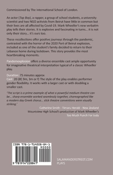 Pandemexplosion shares positive journeys through the pandemic, contrasted with the horror of the 2020 Port of Beirut explosion, as a verbatim play. Commissioned by International School of London, Pandemexplosion offers a diverse ensemble cast ample opportunity for imaginative theatrical interpretation typical of a classic Wheeller play.