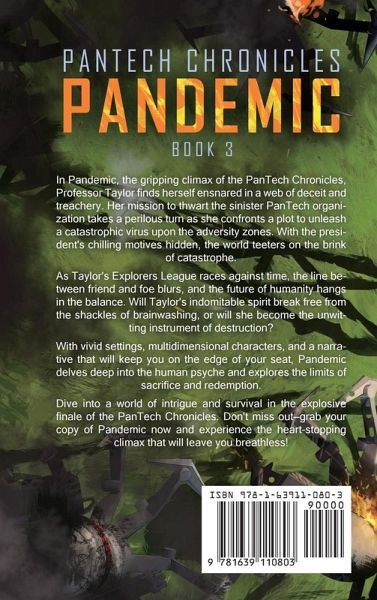 Prepare for a pulse-pounding journey into the heart of darkness where loyalty is tested, alliances crumble, and a deadly virus threatens to erase humanity! In Pandemic, the gripping climax of the PanTech Chronicles, Professor Taylor finds herself ensnared in a web of deceit and treachery. Her mission to thwart the sinister PanTech organization takes a perilous turn as she confronts a plot to unleash a catastrophic virus upon the adversity zones. With the president's chilling motives hidden, the world teeters on the brink of catastrophe. As Taylor's Explorers League races against time, the line between friend and foe blurs, and the future of humanity hangs in the balance. Will Taylor's indomitable spirit break free from the shackles of brainwashing, or will she become the unwitting instrument of destruction? With vivid settings, multidimensional characters, and a narrative that will keep you on the edge of your seat, Pandemic delves deep into the human psyche and explores the limits of sacrifice and redemption.Dive into a world of intrigue and survival in the explosive finale of the PanTech Chronicles. Don't miss out-grab your copy of Pandemic now and experience the heart-stopping climax that will leave you breathless!