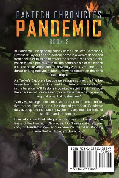 Prepare for a pulse-pounding journey into the heart of darkness where loyalty is tested, alliances crumble, and a deadly virus threatens to erase humanity! In Pandemic, the gripping climax of the PanTech Chronicles, Professor Taylor finds herself ensnared in a web of deceit and treachery. Her mission to thwart the sinister PanTech organization takes a perilous turn as she confronts a plot to unleash a catastrophic virus upon the adversity zones. With the president's chilling motives hidden, the world teeters on the brink of catastrophe. As Taylor's Explorers League races against time, the line between friend and foe blurs, and the future of humanity hangs in the balance. Will Taylor's indomitable spirit break free from the shackles of brainwashing, or will she become the unwitting instrument of destruction? With vivid settings, multidimensional characters, and a narrative that will keep you on the edge of your seat, Pandemic delves deep into the human psyche and explores the limits of sacrifice and redemption.Dive into a world of intrigue and survival in the explosive finale of the PanTech Chronicles. Don't miss out-grab your copy of Pandemic now and experience the heart-stopping climax that will leave you breathless!