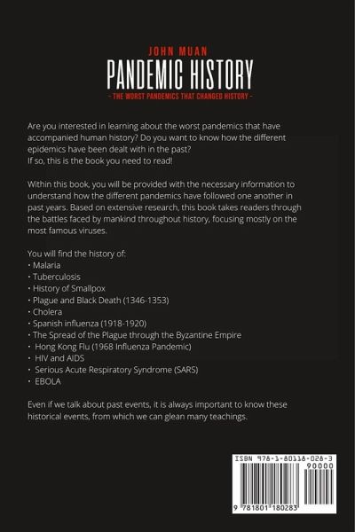 Description Are you interested in learning about the worst pandemics that have accompanied human history? Do you want to know how the different epidemics have been dealt with in the past? If so, this is the book you need to read! Within this book, you will be provided with the necessary information to understand how the different pandemics have followed one another in past years. Based on extensive research, this book takes readers through the battles faced by mankind throughout history, focusing mostly on the most famous viruses. You will find the history of: ¿ Malaria ¿ Tuberculosis ¿ History of Smallpox ¿ Plague and Black Death (1346-1353) ¿ Cholera ¿ Spanish influenza (1918-1920) ¿ The Spread of the Plague through the Byzantine Empire ¿ Hong Kong Flu (1968 Influenza Pandemic) ¿ HIV and AIDS ¿ Serious Acute Respiratory Syndrome (SARS) ¿ EBOLA Even if we talk about past events, it is always important to know these historical events, from which we can glean many teachings.