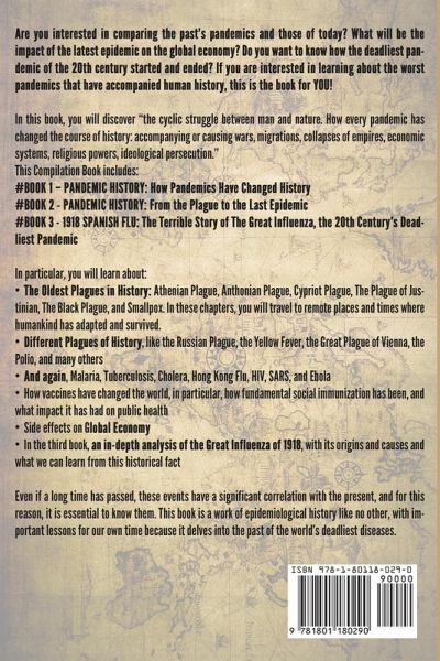 Are you interested in comparing the past's pandemics and those of today? What will be the impact of the latest epidemic on the global economy? Do you want to know how the deadliest pandemic of the 20th century started and ended? If you are interested in learning about the worst pandemics that have accompanied human history, this is the book for YOU! In this book, you will discover "the cyclic struggle between man and nature. How every pandemic has changed the course of history: accompanying or causing wars, migrations, collapses of empires, economic systems, religious powers, ideological persecution." This Compilation Book includes: #BOOK 1 - PANDEMIC HISTORY: How Pandemics Have Changed History #BOOK 2 - PANDEMIC HISTORY: From the Plague to the Last Epidemic #BOOK 3 - 1918 SPANISH FLU: The Terrible Story of The Great Influenza, the 20th Century's Deadliest Pandemic In particular, you will learn about: · The Oldest Plagues in History: Athenian Plague, Anthonian Plague, Cypriot Plague, The Plague of Justinian, The Black Plague, and Smallpox. In these chapters, you will travel to remote places and times where humankind has adapted and survived. · Different Plagues of History, like the Russian Plague, the Yellow Fever, the Great Plague of Vienna, the Polio, and many others · And again, Malaria, Tuberculosis, Cholera, Hong Kong Flu, HIV, SARS, and Ebola · How vaccines have changed the world, in particular, how fundamental social immunization has been, and what impact it has had on public health · Side effects on Global Economy · In the third book, an in-depth analysis of the Great Influenza of 1918, with its origins and causes and what we can learn from this historical fact Even if a long time has passed, these events have a significant correlation with the present, and for this reason, it is essential to know them. This book is a work of epidemiological history like no other, with important lessons for our own time because it delves into the past of the world's deadliest diseases. Are you ready to dive into this fascinating reading?