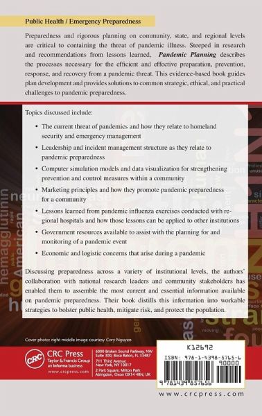 Resources Available to Assist with Planning and Monitoring a Pandemic. Classic Military War Principles Applied to Pandemic Preparation. Local Leadership in a Pandemic Influenza. Developing a Systematic Pandemic Influenza Program for Preparing a State. Pandemic Planning for Local Health Departments. Developing a Prevention and Control Program with an Accompanying Simulation. Engaging Volunteer Organizations to Prepare for Pandemics. Lessons Learned from H1N1: Use of the Incident Command System in the Public Health Response. All-Hazard Public Health: Business as Usual. The Future of Survey-Based Research: Exploring University Students' Vaccination Decision. A Demonstration of Social Media Research Methods: Investigating the Public Opinion of the Flu Shot during the H1N1 Pandemic. Developing a Mission-Ready Influenza Epidemic Preparedness Strategy for Campus Public Safety Responders. Lessons Learned from Tabletop Exercises. Preparedness Planning: Five Motivating Dimensions. Recovery Planning for Critical Pandemic-Associated Built Infrastructure. Index.