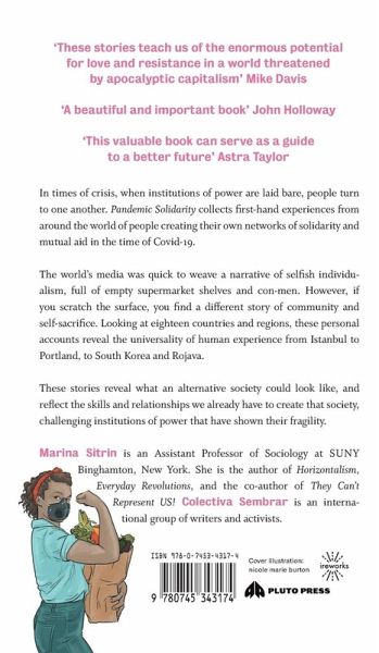 In times of crisis, when institutions of power are laid bare, people turn to one another. Pandemic Solidarity collects firsthand experiences from around the world of people creating their own narratives of solidarity and mutual aid in the time of the global crisis of Covid-19. The world's media was quick to weave a narrative of selfish individualism, full of empty supermarket shelves and con-men. However, if you scratch the surface, you find a different story of community and self-sacrifice. Looking at eighteen countries and regions, including India, Rojava, Taiwan, South Africa, Iraq and North America, the personal accounts in the book weave together to create a larger picture, revealing a universality of experience - a housewife in Istanbul supports her neighbour in the same way as a teacher in Argentina, a punk in Portland, and a disability activist in South Korea does. Moving beyond the present, these stories reveal what an alternative society could look like, and reflect the skills and relationships we already have to create that society, challenging institutions of power that have already shown their fragility.