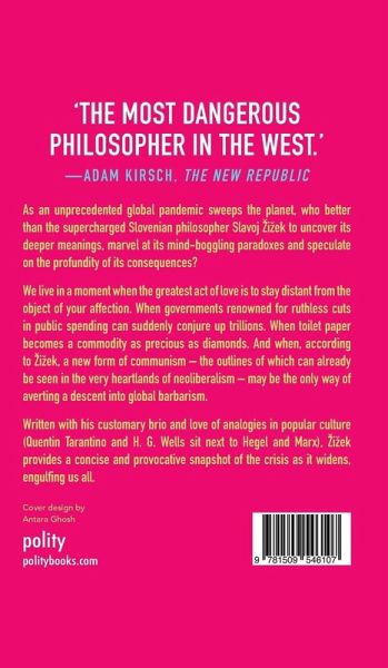 As an unprecedented global pandemic sweeps the planet, who better than the supercharged Slovenian philosopher Slavoj ?i?ek to uncover its deeper meanings, marvel at its mind-boggling paradoxes and speculate on the profundity of its consequences?
