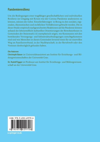 Um eine tragfähige gesellschaftliche und individuelle Resilienz im Umgang mit Krisen wie der Corona-Pandemie zu entwickeln, ist es wesentlich, gemeinsam bewegliche Regelungen in Bezug auf gemeinsame Angelegenheiten zu bestimmen. Die in dieser Studie empirisch nachgezeichneten Reaktionen auf subjektive, ökonomische und regionale Veränderungen während der Pandemie werden in Bezug zu den lebensweltlich-kulturellen Orientierungen der BewohnerInnen gebracht. An Gemeinden in der Steiermark (A) wird exemplarisch gezeigt, wie Kommunen mit den bestehenden Versorgungs- und Infrastrukturbedingungen zurechtgekommen sind, und wie Menschen in diesen Gemeinden lernend einen Weg im Familienverbund, in der Nachbarschaft, in der Berufswelt oder den Vereinen gefunden haben bzw. welche Aspekte in den genannten Lebenswelten als hilfreiche Instrumente wahrgenommen wurden.