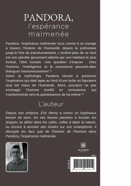 Pandora, l¿espérance malmenée vous convie à un voyage à travers l¿histoire de l¿humanité, depuis la préhistoire jusqüà l¿ère du transhumanisme. L¿arrière-plan de ce récit est une planète gravement altérée par son habitant le plus évolué, l¿être humain. Une question s¿impose : chez l¿homme, l¿intelligence et la conscience peuvent-elles dialoguer harmonieusement ? Selon la mythologie, Pandora réussit à préserver l¿espérance qui était tapie au fond d¿une boîte où figuraient tous les maux de l¿humanité. Alors, pourquoi ne pas envisager l¿homme éveillé en conscience, qui s¿acheminerait vers la quintessence de lui-même ?