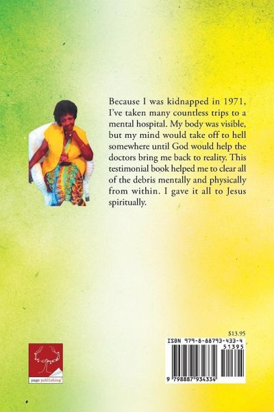 Because I was kidnapped in 1971, I've taken many countless trips to a mental hospital. My body was visible, but my mind would take off to hell somewhere until God would help the doctors bring me back to reality. This testimonial book helped me to clear all of the debris mentally and physically from within. I gave it all to Jesus spiritually.