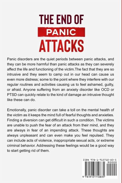 Panic disorders are the quiet periods between panic attacks, and they can be more harmful than panic attacks as they can severely affect the life and functioning of the victim.The fact that they are so intrusive and they seem to camp out in our head can cause us even more distress; some to the point where they interfere with our regular routines and activities causing us to feel ashamed, guilty, or afraid. Anyone suffering from an anxiety disorder like OCD or PTSD can quickly relate to the kind of damage an intrusive thought like these can do. Emotionally, panic disorder can take a toll on the mental health of the victim as it keeps the mind full of fearful thoughts and anxieties. Finding a diversion can get difficult in such a condition. The victims are unable to push the fear of an attack from their mind, and they are always in fear of an impending attack. These thoughts are always unpleasant and can even make you feel repulsed. They can include acts of violence, inappropriate sexual acts, or extreme criminal behavior. Addressing these feelings would be a good way to start getting rid of them. In This Book You Will Learn: ¿ Understanding Panic Attacks and Panic Disorders ¿ What Is a Panic Attack? ¿ Developing Anxiety Routines ¿ Routines to Decrease Anxiety ¿ The Importance of a Balanced Morning Routine ¿ Benefits of a Morning Routine ¿ Good Self-Care Practices ¿ Taking Responsibility for Your Happiness ¿ You Treat Yourself As You Would a Close Friend ¿ Your Life Is Set Around Your Own Values ¿ Demanding Your Own Self-Care ¿ Give Yourself Permission to Set Boundaries ¿ Biological and Psychological Causes of Panic Attacks ¿ Who Is At a Greater Risk of Panic Attacks? ¿ Tips to Cope With Panic Attacks When They Strike BONUS! ¿ Ways to Prevent Panic Attacks ¿ The 8-week Plan to Deal With Panic Attacks ¿ Identify the Triggers, Fears, and Problematic Behavior ¿ Identify Your Negative Thought Patterns ¿ Dissociate From the Negative Thought Patterns ¿ Facing the Fears Head-on ¿ Practicing Relaxation & Mindfulness ¿ Anxiety, The Monster Within ¿ Aspects of Successful Visualization Practices ¿ Forms of Visualization for Anxiety ¿ Altered Memory Visualization ¿ Receptive Visualization ¿ How to Design Your Own "Safe Space" Pick up your copy of the book right now by clicking the BUY NOW button at the top of this page!