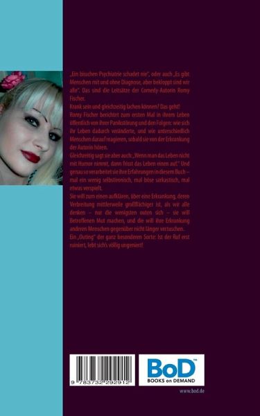"Ein bisschen Psychiatrie schadet nie", oder auch "Es gibt Menschen mit und ohne Diagnose, aber bekloppt sind wir alle". Das sind die Leitsätze der Comedy-Autorin Romy Fischer.Krank sein und gleichzeitig lachen können? Das geht!Romy Fischer berichtet zum ersten Mal in ihrem Leben öffentlich von ihrer Panikstörung und den Folgen: wie sich ihr Leben dadurch veränderte, und wie unterschiedlich Menschen darauf reagieren, sobald sie von der Erkrankung der Autorin hören.Gleichzeitig sagt sie aber auch: "Wenn man das Leben nicht mit Humor nimmt, dann frisst das Leben einen auf." Und genau so verarbeitet sie ihre Erfahrungen in diesem Buch - mal ein wenig selbstironisch, mal böse sarkastisch, mal etwas verspielt.Sie will zum einen aufklären, über eine Erkrankung, deren Verbreitung mittlerweile großflächiger ist, als wir alle denken - nur die wenigsten outen sich - sie will Betroffenen Mut machen, und die will ihre Erkrankung anderen Menschen gegenüber nicht länger vertuschen.Ein "Outing"der ganz besonderen Sorte: Ist der Ruf erst ruiniert, lebt sich's völlig ungeniert!