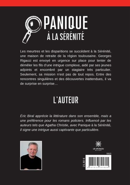 Les meurtres et les disparitions se succèdent à la Sérénité, une maison de retraite de la région toulousaine. Georges Rigacci est envoyé en urgence sur place pour tenter de démêler les fils d¿une intrigue complexe, aidé par ses jeunes adjoints et encombré par un stagiaire très particulier. Seulement, sa mission n¿est pas de tout repos. Entre des rencontres singulières et des découvertes inattendues, il va de surprise en surprise¿