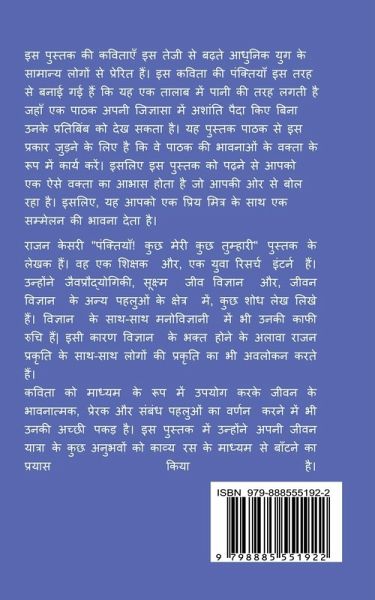 The poems in this book are inspired by the common people of this fast-growing modern age. The lines of this poem are made in such a way that it looks like water in a pond where a reader can see his reflection without disturbing their curiosity. This book is meant to connect with the reader in such a way that the book acts as a speaker of the reader's feelings. So reading this book gives you the impression of a speaker who is speaking on your's behalf. Hence, it gives you the feeling of a conclave with a dear friend.