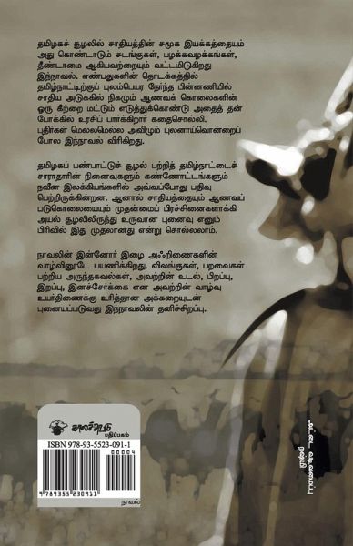 This novel revolves around the social movement of caste in the environment of Tamil Nadu and the rituals, customs and untouchability it celebrates. In the background of his migration to Tamil Nadu in the early eighties, the narrator deals with the murders that occurred in the caste stratum and examines it in his way. This novel unfolds like an investigation in which puzzles slowly gets solved. The memories and views of people outside Tamil Nadu about the cultural environment of Tamil Nadu have been recorded from time to time in modern literature. But it can be said that it is for the first time a fiction emerged from an outsider dealing with Tamil Nadu's casteism and caste- driven killing as its primary issues. Another thread of the novel travels through the lives of non human beings. The peculiarity of this novel is that the stories about animals and birds, their bodies, birth, death, extinction, and their lives are fabricated with utmost care.