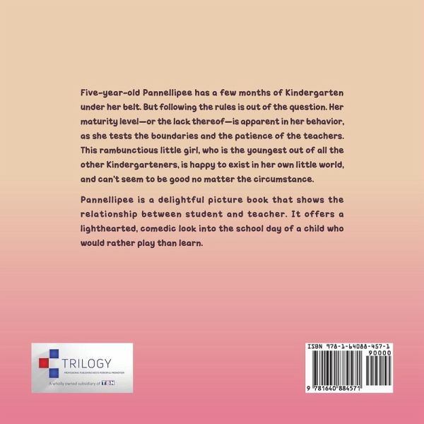 Five-year-old Pannellipee has a few months of Kindergarten under her belt. But following the rules is out of the question. Her maturity level--or the lack thereof--is apparent in her behavior, as she tests the boundaries and the patience of the teachers. This rambunctious little girl, who is the youngest out of all the other Kindergarteners, is happy to exist in her own little world, and can't seem to be good no matter the circumstance. Pannellipee is a delightful picture book that shows the relationship between student and teacher. It offers a lighthearted, comedic look into the school day of a child who would rather play than learn.