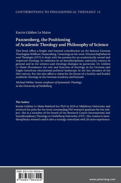This book offers a bright and learned contribution on the famous German Theologian Wolfhart Pannenberg. Centering on his work Wissenschaftstheorie und Theologie (1973) it deals with his passion for an academically sound and respected theology, its radiation in an interdisciplinary university context in general and in the science-and-theology-dialogue in particular. Dr. Gülden Le Maire illuminates the role and function of theology in the German and Anglo-American educational-political landscape in the last decades of the 20st century. But she also offers a vision for the future of a healthy and fruitful academic theology in the German Academy and beyond.