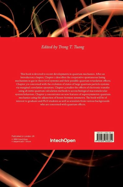 This book is devoted to recent developments in quantum mechanics. After an Introductory chapter, Chapter 2 describes the cooperative spontaneous lasing mechanism in gas in three level systems and their possible quantum retardation effects. Chapter 3 is concerned with the evolution of states of large quantum particle systems via marginal correlation operators. Chapter 4 studies the effects of electronic transfer using ab initio quantum calculation methods to access biological macromolecular system behaviors. Chapter 5 concentrates on new features of supersymmetric quantum mechanics using the adjunction of boson-fermion symmetry. The book will be of interest to graduate and Ph.D students as well as scientists from various backgrounds who are concerned with quantum effects.