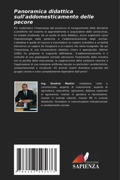 Per evidenziare l'importanza del processo di insegnamento delle discipline scientifiche nel sistema di apprendimento e acquisizione delle conoscenze, ho iniziato studiando, da un punto di vista didattico, alcuni argomenti come l'epistemologia della zootecnia e l'addomesticamento degli animali. L'obiettivo è quello di riuscire a trasmettere un sapere scientifico a un'abilità attraverso un sapere da insegnare e un sapere che viene insegnato. Da qui l'importanza di una trasposizione didattica chiara e appropriata. Helmer (1992) ha proposto la seguente definizione: "L'addomesticamento è il controllo di una popolazione animale attraverso l'isolamento della mandria con la perdita della mescolanza, la soppressione della selezione naturale e l'applicazione di una selezione artificiale basata su particolari caratteristiche, comportamentali o strutturali. Gli animali viventi diventano proprietà del gruppo umano e sono completamente dipendenti dall'uomo".
