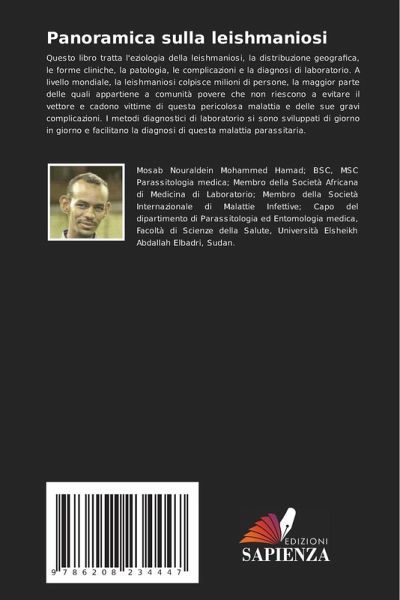 Questo libro tratta l'eziologia della leishmaniosi, la distribuzione geografica, le forme cliniche, la patologia, le complicazioni e la diagnosi di laboratorio. A livello mondiale, la leishmaniosi colpisce milioni di persone, la maggior parte delle quali appartiene a comunità povere che non riescono a evitare il vettore e cadono vittime di questa pericolosa malattia e delle sue gravi complicazioni. I metodi diagnostici di laboratorio si sono sviluppati di giorno in giorno e facilitano la diagnosi di questa malattia parassitaria.