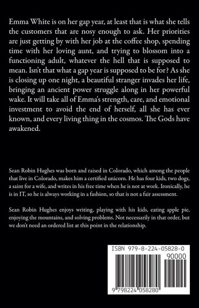 Emma White is on her gap year, at least that is what she tells the customers that are nosy enough to ask. Her priorities are just getting by with her job at the coffee shop, spending time with her loving aunt, and trying to blossom into a functioning adult, whatever the hell that is supposed to mean. Isn't that what a gap year is supposed to be for? As she is closing up one night, a beautiful stranger invades her life, bringing an ancient power struggle along in her powerful wake. It will take all of Emma's strength, care, and emotional investment to avoid the end of herself, all she has ever known, and every living thing in the cosmos. The Gods have awakened.
