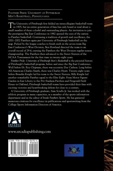 The University of Pittsburgh first fielded an intercollegiate basketball team in 1905, but an entire generation of fans has only heard or read about a small number of these colorful and outstanding players. An invitation to join the prestigious Big East Conference in 1982 opened the eyes of the nation to Panther basketball. Continuing a tradition of growth and excellence, the 2001-2002 Panthers again put University of Pittsburgh basketball on the map. Picked by the league coaches to finish sixth in the seven-team Big East Conference's West Division, Ben Howland directed the team to an overall record of 29-6, earning the Panthers the West Division regular-season championship. The Panthers then advanced to the Sweet Sixteen of the NCAA Tournament for the first time in twenty-eight years. Panther Pride: University of Pittsburgh Men's Basketball is the pictorial history of Pittsburgh's basketball program, before and since the Big East Conference. Well before Dr. Roy Chipman, there was eccentric Doc Carlson. Long before All-American Charles Smith, there was Charley Hyatt. Twenty-eight years before Brandin Knight led his team to the Sweet Sixteen, Billy Knight led another remarkable Panther squad to the Elite Eight. From Motor Square Garden in East Liberty to the Pitt Stadium Pavilion and Fitzgerald Field House in Oakland, Pittsburgh basketball teams have provided their fans with exciting victories and heartbreaking defeats for close to a century.