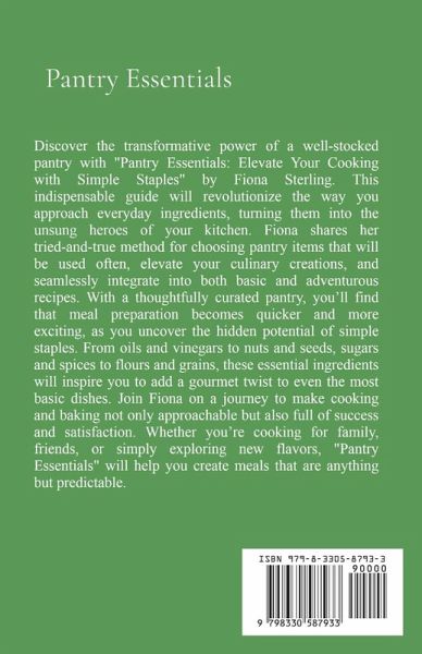 Discover the transformative power of a well-stocked pantry with "Pantry Essentials: Elevate Your Cooking with Simple Staples" by Fiona Sterling. This indispensable guide will revolutionize the way you approach everyday ingredients, turning them into the unsung heroes of your kitchen. Fiona shares her tried-and-true method for choosing pantry items that will be used often, elevate your culinary creations, and seamlessly integrate into both basic and adventurous recipes. With a thoughtfully curated pantry, you'll find that meal preparation becomes quicker and more exciting, as you uncover the hidden potential of simple staples. From oils and vinegars to nuts and seeds, sugars and spices to flours and grains, these essential ingredients will inspire you to add a gourmet twist to even the most basic dishes. Join Fiona on a journey to make cooking and baking not only approachable but also full of success and satisfaction. Whether you're cooking for family, friends, or simply exploring new flavors, "Pantry Essentials" will help you create meals that are anything but predictable.