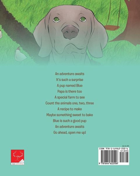 An adventure awaits It's such a surprise A pup named Blue Papa is there too A special farm to see Count the animals one, two, three A recipe to make Maybe something sweet to bake Blue is such a good pup An adventure awaits Go ahead, open me up!