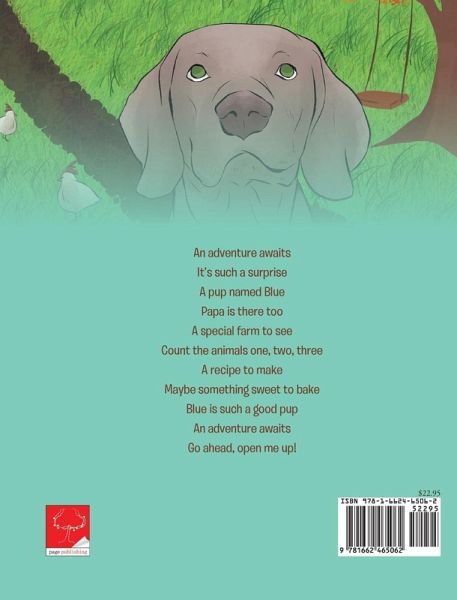 An adventure awaits It's such a surprise A pup named Blue Papa is there too A special farm to see Count the animals one, two, three A recipe to make Maybe something sweet to bake Blue is such a good pup An adventure awaits Go ahead, open me up!