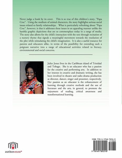 Never judge a book by its cover. This is so true of this children's story, "Papa Croc". Using the medium of animal characters, the story highlights serious social issues related to family relationships. What is particularly refreshing about "Papa Croc", however, is that it addresses these issues in an appealing manner unlike the harshly graphic depictions that are so commonplace today in a range of media. The story also allows for the child's interaction with the text through recitation of a nursery rhyme that signals a meaningful movement towards the resolution of the plot that caters not only to the child's imagination, but to parents and teachers alike, in terms of the possibility for extending such a poignant narrative into a range of language, health and family life, and character education activities.