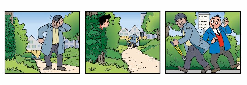 In einem weitereren Fall geht es um einen Brand in einem Gartenhäuschen im Park einer grossen Villa. Der Besitzer der Villa besteht auf Brandstiftung. Aber wer könnte einen Grund haben, dieses Häuschen anzuzünden? Und wie, wo doch zwei riesige Dobermänner das Gelände bewachen? Papa Moll begibt sich an den «Tatort» und findet einen Kerzenstummel. Damit konfrontiert er den Villenbesitzer. Der erinnert sich ... weil die Glühbirne kaputt war, hat er mit einer Kerze Licht gemacht, und die muss er wohl vergessen haben.