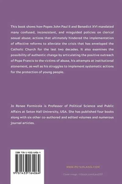 This book shows how Popes John Paul II and Benedict XVI mandated many confused, inconsistent, and misguided policies on clerical sexual abuse; actions that ultimately hindered the implementation of effective reforms to alleviate the crisis that has enveloped the Catholic Church for the last two decades. It also examines the possibility of authentic change by articulating the positive outreach of Pope Francis to the victims of abuse, his attempts at institutional atonement, as well as his struggles to implement systematic actions for the protection of young people.