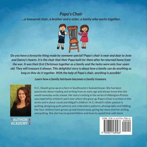 This delightful story is about how a family can do anything as long as they do it together and with the help of Papa's chair, anything is possible. Read more about Josie, Danny, Mama, and Papa at www.hchewittauthor.com.