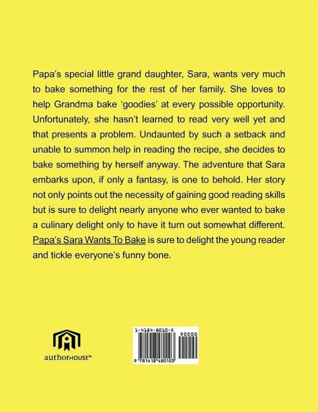 Papa's special little grand daughter, Sara, wants very much to bake something for the rest of her family. She loves to help Grandma bake 'goodies' at every possible opportunity. Unfortunately, she hasn't learned to read very well yet and that presents a problem. Undaunted by such a setback and unable to summon help in reading the recipe, she decides to bake something by herself anyway. The adventure that Sara embarks upon, if only a fantasy, is one to behold. Her story not only points out the necessity of gaining good reading skills but is sure to delight nearly anyone who ever wanted to bake a culinary delight only to have it turn out somewhat different. Papa's Sara Wants To Bake is sure to delight the young reader and tickle everyone's funny bone.