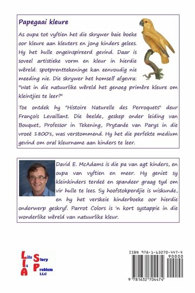 As oupa tot vyftien het ek al baie boeke oor kleure aan kleuters en jong kinders gelees. Ek het hulle ongeïnspireerd gevind. Daar is soveel artistieke vorm en kleur in hierdie wêreld: spotprenttekeninge kan eenvoudig nie meeding nie. Ek het myself afgevra: "Wat in die wêreld het genoeg primêre kleure om kleintjies te leer?" Toe ontdek ek Histoire Naturelle des Perroquets deur François Levaillant. Die beelde, geskep onder leiding van Bouquet, Professor in Tekening, Prytanée van Parys in die vroeë 1800's, was verstommend. Ek het die perfekte medium gevind om oral kleurname aan kinders te leer.