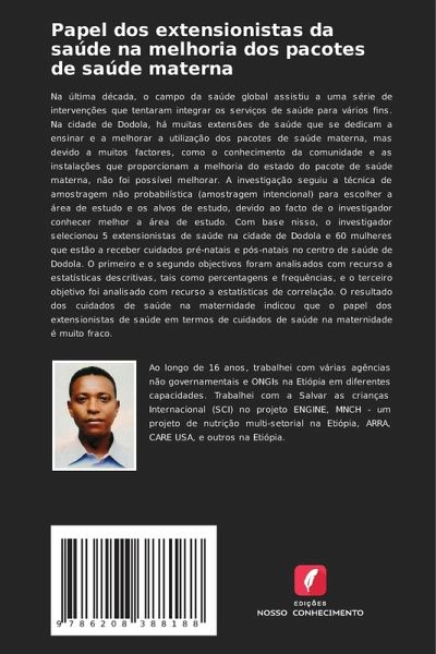 Na última década, o campo da saúde global assistiu a uma série de intervenções que tentaram integrar os serviços de saúde para vários fins. Na cidade de Dodola, há muitas extensões de saúde que se dedicam a ensinar e a melhorar a utilização dos pacotes de saúde materna, mas devido a muitos factores, como o conhecimento da comunidade e as instalações que proporcionam a melhoria do estado do pacote de saúde materna, não foi possível melhorar. A investigação seguiu a técnica de amostragem não probabilística (amostragem intencional) para escolher a área de estudo e os alvos de estudo, devido ao facto de o investigador conhecer melhor a área de estudo. Com base nisso, o investigador selecionou 5 extensionistas de saúde na cidade de Dodola e 60 mulheres que estão a receber cuidados pré-natais e pós-natais no centro de saúde de Dodola. O primeiro e o segundo objectivos foram analisados com recurso a estatísticas descritivas, tais como percentagens e frequências, e o terceiro objetivo foi analisado com recurso a estatísticas de correlação. O resultado dos cuidados de saúde na maternidade indicou que o papel dos extensionistas de saúde em termos de cuidados de saúde na maternidade é muito fraco.