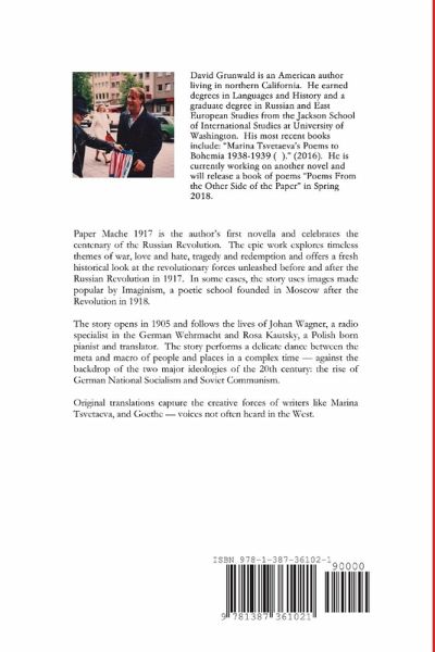 Paper Mache 1917 is the author's first novella and celebrates the centenary of the Russian Revolution. The epic work explores timeless themes of war, love and hate, tragedy and redemption and offers a fresh historical look at the revolutionary forces unleashed before and after the Russian Revolution in 1917. In some cases, the story uses images made popular by Imaginism, a poetic school founded in Moscow after the Revolution in 1918. The story opens in 1905 and follows the lives of Johan Wagner, a radio specialist in the German Wehrmacht and Rosa Kautsky, a Polish born pianist and translator. The story performs a delicate dance between the meta and macro of people and places in a complex time - against the backdrop of the two major ideologies of the 20th century: the rise of German National Socialism and Soviet Communism. Original translations capture the creative forces of writers like Marina Tsvetaeva, and Goethe - voices not often heard in the West.