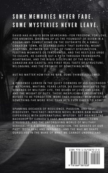 In the quiet town of Hope, British Columbia, David, the youngest of seven siblings, grows up on the outskirts of town in a mobile home, surrounded by the vast wilderness of the Pacific Northwest. With an overworked mother, a gruff and distant father, and older siblings who either ignore or torment him, David learns early how to fend for himself. But beyond the struggles of his complicated family dynamic, something far stranger lurks in the shadows of his childhood.When David is visited night after night by an alien grey being, his world is flipped upside down. Is he losing his mind? Is this a dream? Or is something-someone-choosing him for a reason? His encounters leave him with more questions than answers, and as he grows older, his obsession with understanding the visitors deepens. But he isn't the only one watching. Michelle, a girl from school with her own secrets, suspects David is hiding something. Convinced his strange behavior has a deeper meaning, she and her younger sister Vanessa join Air Cadets to spy on him-only to find themselves entangled in his orbit in ways they never expected. Through the years, David navigates school, first loves, betrayals, and the challenging world of Air Cadets, where his friendship with Jason slowly turns from rivalry to resentment. Jason, born into wealth, has always had the best of everything, yet he remains jealous of David's natural charisma. What starts as playful competition slowly becomes a simmering tension that threatens to explode. As David prepares to leave Hope behind, he faces one last summer of transformation-a romance with Fiona, a girl he meets at a flight training camp, further fuels his confidence, but his mind remains restless. What is his true path? What awaits him beyond the mountains of his childhood? The answers come sooner than he expects. A call from the Canadian Military finally gives him the escape he's longed for. But as David steps into his new life, he realizes that no matter how far he runs, the past-and the visitors-are never truly gone. A blend of dark humor, supernatural mystery, and raw coming-of-age emotion, Paper Planes & Falling Stars is a deeply personal journey of resilience, love, and the search for meaning in an unpredictable universe. Fans of The X-Files, Stand By Me, and The 4400 will find themselves drawn into David's unforgettable story-one that lingers long after the final page.