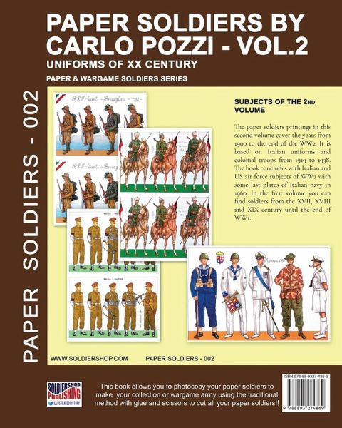 The paper soldiers printings in this first volume cover the years from 1650 to the end of the XIX century. In the second volume we will complete with tables from the XX century. The first infantries series from ‘600 and ‘700 is based on French and Italian subjects, but also English and Irish. You will also find an interesting and curious series regarding the French navy soldiers. Next are some sheets of North America Indians, followed by other uniforms and the Napoleonic era. The book concludes with Italian uniformologic subjects from the XIX century.