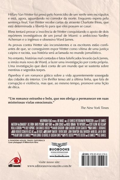 Hillary Van Wetter foi preso pelo homicídio de um xerife sem escrúpulos e está, agora, aguardando no corredor da morte. Enquanto espera pela sentença final, Van Wetter recebe cartas da atraente Charlotte Bless, que está determinada a libertá-lo para que eles possam se casar. Bless tentará provar a inocência de Wetter conquistando o apoio de dois repórteres investigativos de um jornal de Miami: o ambicioso Yardley Acheman e o ingênuo e obsessivo Ward James. As provas contra Wetter são inconsistentes e os escritores estão confiantes de que, se conseguirem expor Wetter como vítima de uma justiça caipira e racista, sua história será aclamada no mundo jornalístico. No entanto, histórias mal contadas e fatos falsificados levarão Jack James, o irmão mais novo de Ward, a fazer uma investigação por conta própria. Uma investigação que dará conta de um mundo que se sustenta sobre mentiras e segredos torpes. Paperboy é um romance gótico sobre a vida aparentemente sossegada das cidades do interior. Um thriller tenso até a última linha, que fala de corrupção e violência, mas que, ao mesmo tempo, promove uma lição de ética. "Um romance estranho belo, que nos obriga a permanecer em suas misteriosas vielas emocionais." - The New York Times.