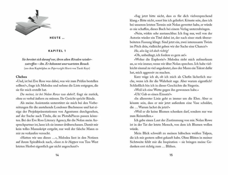 Zwischen Rivalität und Romantik: Unterhaltsame Workplace Romance aus der Buchbranche für junge Leser_innen ab 16 Jahren. Ein aufregender Einblick in die Verlagswelt: Die toughe Programmleiterin Chelsea und der charismatische Literaturagent Nolan halten mit ihren gewagten Wetten die ganze Branche in Atem. Mitreißend: In dem New Adult-Buch mit den beliebten Tropes "fake dating" und "rivals to lovers" funkt es ganz gewaltig. Spannend und humorvoll: Band 3 der Literally Love-Reihe von Tarah Keys über Liebe, Konkurrenzkampf und Bestseller-Bücher ist die perfekte Lektüre für junge Buchliebhaber_innen und Fans von Mona Kasten und Emily Henry.
