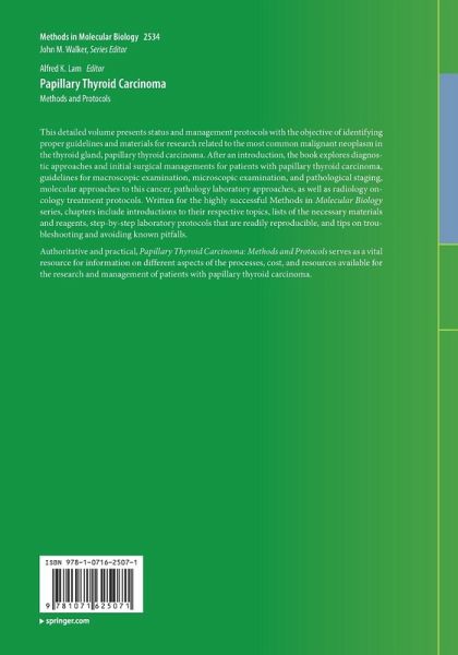 Authoritative and practical, Papillary Thyroid Carcinoma: Methods and Protocols serves as a vital resource for information on different aspects of the processes, cost, and resources available for the research and management of patients with papillary thyroid carcinoma.