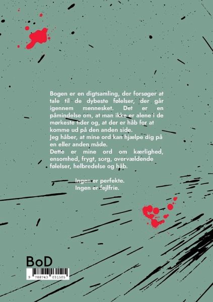 Bogen er en digtsamling, der forsøger at tale til de dybeste følelser, der går igennem mennesket. Det er en påmindelse om, at man ikke er alene i de mørkeste tider og, at der er håb for at komme ud på den anden side. Jeg håber, at mine ord kan hjælpe dig på en eller anden måde. Dette er mine ord om kærlighed, ensomhed, frygt, sorg, overvældende følelser, helbredelse og håb. Ingen er perfekte. Ingen er fejlfrie.
