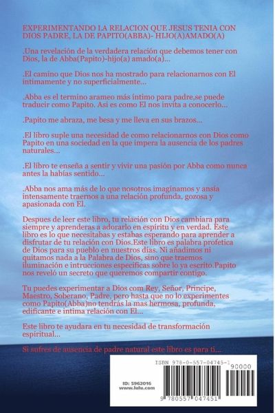 Descubre la relación que debes tener con Dios,que es la relación que modelo, enseño y ordenó Jesus que debiamos tener con Dios Padre. La relación de Abba(Papito)-hijo(a) amado(a).Tu relación conDios cambiara luego de leer este libro.El mismo llena una gran necesidad que tu tienes en tu vida.