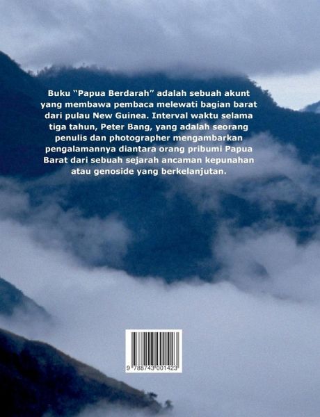 Buku "Papua Berdarah" adalah sebuah akunt yang membawa pembaca melewati bagian barat dari pulau New Guinea. Interval waktu selama tiga tahun, Peter Bang, yang adalah seorang penulis dan photographer mengambarkan pengalamannya diantara orang pribumi Papua Barat dari sebuah sejarah ancaman kepunahan atau genoside yang berkelanjutan. PAPUA BERDARAH is a documentary eyewitness account taking the reader through the western part of the island of New Guinea. Over an interval spanning three decades the Danish author and photographer Peter Bang describes his experiences among the indigenous people of West Papua, who are threatened by a continuing history of extinction. The book is an Indonesian/Bahasa translation of the English edition of the book Papua Blood - A Photographers Eyewitness Account of West Papua over 30 Years.