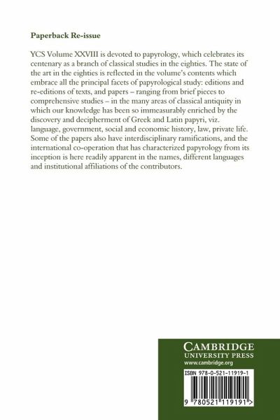 Yale Classical Studies volume XXVIII is devoted to papyrology, which celebrated its centenary as a branch of classical studies in the eighties. The volume embraces all the principal facets of papyrological study: editions and re-editions of texts and papers - ranging from brief pieces to comprehensive studies - in the many areas of classical antiquity in which our knowledge has been so immeasurably enriched by the discovery and decipherment of Greek and Latin papyri, viz. language, government, social and economic history, law and private life. Some of the papers also have interdisciplinary ramifications and the international co-operation that has characterised papyrology from its inception is here readily apparent in the names, different languages and institutional affiliations of the contributors.