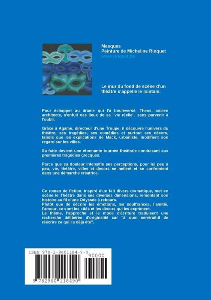 Pour ¿chapper au drame qui l'a boulevers¿, Theos, ancien architecte, s'enfuit des lieux de sa "vie r¿elle". Gr¿ce ¿ Agame, directeur d'une Troupe, il d¿couvre l'univers du th¿¿tre, ses trag¿dies, ses com¿dies et surtout ses d¿cors, tandis que les explications de Mack, urbaniste, modifient son regard sur les villes. Sa fuite devient une ¿tonnante tourn¿e th¿¿trale conduisant aux premi?res trag¿dies grecques. Parce que sa douleur intensifie ses perceptions, pour lui peu ¿ peu, vie, th¿¿tre, villes et d¿cors se m?lent et se confondent dans une d¿marche cr¿atrice. Ce roman de fiction, inspir¿ d'un fait divers dramatique, met en sc?ne le Th¿¿tre dans ses diverses dimensions, remontant son histoire au fil d'une Odyss¿e ¿ rebours. Plut¿t que de d¿crire les ¿motions, les souffrances, lÕamiti¿, lÕamour, ce sont les cit¿s et les d¿cors qui les expriment. Le th?me, l'approche et le mode d'¿criture traduisent une recherche d¿lib¿r¿e d'originalit¿ car "¿ quoi servirait-il de r¿¿crire ce qui l'a d¿j¿ ¿t¿".