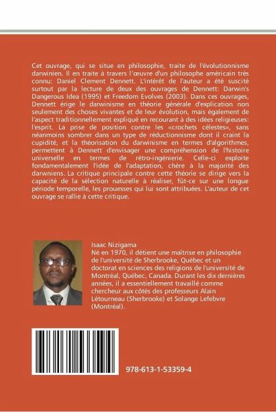 Cet ouvrage, qui se situe en philosophie, traite de l'évolutionnisme darwinien. Il en traite à travers l'oeuvre d'un philosophe américain très connu: Daniel Clement Dennett. L'intérêt de l'auteur a été suscité surtout par la lecture de deux des ouvrages de Dennett: Darwin's Dangerous Idea (1995) et Freedom Evolves (2003). Dans ces ouvrages, Dennett érige le darwinisme en théorie générale d'explication non seulement des choses vivantes et de leur évolution, mais également de l'aspect traditionnellement expliqué en recourant à des idées religieuses: l'esprit. La prise de position contre les «crochets célestes», sans néanmoins sombrer dans un type de réductionnisme dont il craint la cupidité, et la théorisation du darwinisme en termes d'algorithmes, permettent à Dennett d'envisager une compréhension de l'histoire universelle en termes de rétro-ingénierie. Celle-ci exploite fondamentalement l'idée de l'adaptation, chère à la majorité des darwniens. La critique principale contre cette théorie se dirige vers la capacité de la sélection naturelle à réaliser, fût-ce sur une longue période temporelle, les prouesses qui lui sont attribuées. L'auteur de cet ouvrage se rallie à cette critique.