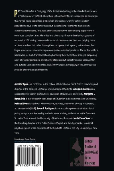 PAR EntreMundos: A Pedagogy of the Américas challenges the standard narratives of "achievement" to think about how Latinx students can experience an education that forges new possibilities of liberation and justice. Growing Latinx student populations have led to concerns about "assimilating" them into mainstream academic frameworks. This book offers an alternative, decolonizing approach that embraces complex Latinx identities and clears a path toward resisting systems of oppression. Educating Latinx students should involve more than just helping them achieve in school but rather having them recognize their agency to transform the larger structure of education to promote justice-oriented practices. The authors offer a framework for such transformation by honoring their theoretical lineages, proposing a set of guiding principles, and sharing stories about collective social action within and outside Latinx communities. PAR EntreMundos: A Pedagogy of the Américas is a practice ofliberation and freedom.