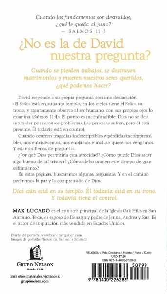 Durante tiempos de tragedia muchas personas desesperadamente quieren encontrar respuestas. Tanto creyentes como no creyentes buscan a Dios durante estas circunstancias. El mejor autor de éxitos de librería, Max Lucado, le da la única solución que usted necesita durante estos tiempos de crisis: la oración. En el libro Para estos tiempos díficiles, Lucado nos ayuda a entender cómo orar a pesar de la duda y el temor. For These Tough Times When tragedy strikes, people desperately search for answers. Believers and unbelievers alike find themselves turning to God. Best-selling author and pastor Max Lucado points to the only real answer to tragedy and crisis: Prayer. In For These Tough Times, Lucado helps us understand how to pray despite our doubt and fear.